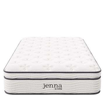 In comparison to other mattresses on the market, the Modway Jenna stands out for its hybrid design that merges the advantages of innerspring support and foam comfort, making it more versatile than traditional foam mattresses that might retain heat or lack responsiveness. Additionally, this mattress's motion isolation technology is superior to many leading competitors, providing a quieter and more peaceful sleep environment for couples. With its robust fire-resistance features and impressive 10-year warranty, the Jenna mattress clearly outshines the competition in terms of safety and lifespan.