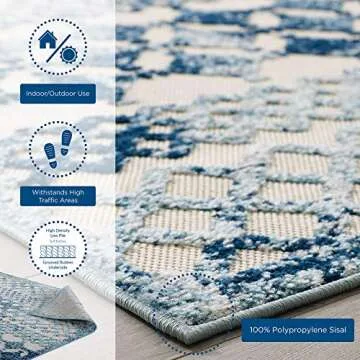- Outdoor Versatility: Its fade, stain, and water-resistant properties, combined with a grooved rubber bottom, allow this rug to perform superbly in various weather conditions.