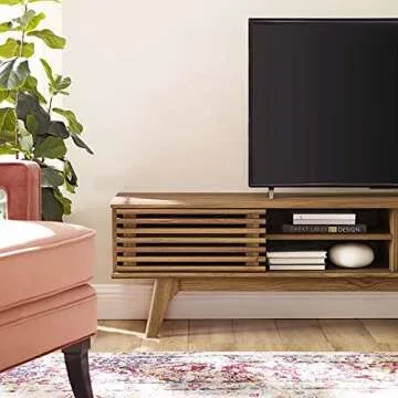 Modway Render 70" Mid-Century Modern Low Profile Media Console TV Stand, 70 Inch, Walnut Walnut