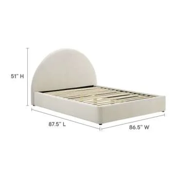 Introducing the Modway Resort King Size Platform Bed, an exquisite combination of luxury, comfort, and contemporary design. This stunning bed features a unique arch-shaped round headboard that not only enhances its cloud bed aesthetic, but also brings a plush and inviting atmosphere to your master bedroom. Wrapped in stain-resistant performance velvet, the Resort bed is plush and indulgent to the touch, effortlessly elevating the look and feel of any space. With overall dimensions...