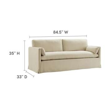 Show more Introducing the elegant Modway Wellfleet Slipcovered Sofa, a stunning centerpiece that blends comfort, style, and functionality. Designed with meticulous attention to detail, this modern sofa features a tailored look enhanced by French piping trim and corner pleats, giving it a refined aesthetic that complements any contemporary or modern decor. The luxurious linen-textured fabric slipcover is not only visually appealing but also secured with discreet velcro strips for a sleek finish, making it an exceptional addition to your home.