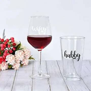 Modwnfy Wifey & Hubby Wine Glass and Beer Glass Set for Couples, Perfect Gift for Any Occasion