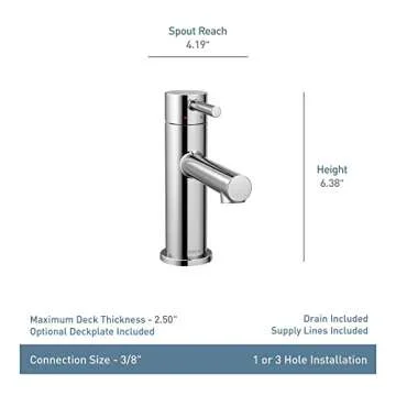 Moen Align Matte Black One-Handle Modern Bathroom Faucet with Drain Assembly and Optional Deckplate, 6190BL
