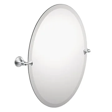 Show more Elevate your bathroom's aesthetic with the stunning Moen Glenshire 26 x 22-Inch Frameless Bathroom Mirror. This elegant and frameless design speaks volumes about contemporary sophistication, making it an impressive addition to any bathroom decor. Each pivoting mirror is not only a reflection of superior craftsmanship but also embodies practicality. Constructed from high-quality materials, this mirror promises durability while enhancing any wet environment. The mirror-like chrome finish is specially formulated to resist corrosion, ensuring it looks pristine for years to come.