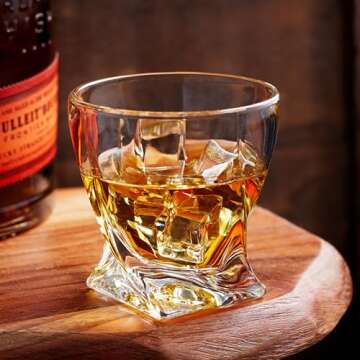 Mofado Crystal Whiskey Glasses - Twisted (Set of 4) 10oz- Sturdy and Stable - Old Fashioned Cocktail Glasses, Scotch, Borboun, Martini - Lowball Tumbler/Rock Glasses- Ideal Gift