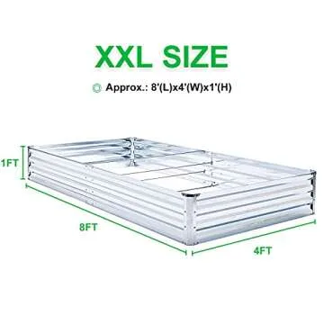 Show morePrepare to transform your gardening experience with this extraordinary XXL Raised Garden Bed! Measuring at a generous 8 feet in length, 4 feet in width, and 1 foot in height, it provides a vast area for cultivating your favorite plants, whether they're flowers, vegetables, herbs, or succulents. This remarkable product is not just a garden accessory; it's the beginning of your green-thumb journey!