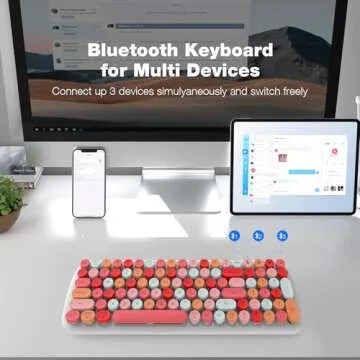 Show moreThe MOFII Wireless Bluetooth Keyboard revolutionizes your typing experience with its charming retro round keycaps that radiate nostalgia and fun. Designed in delightful bubble tea colors, this keyboard is more than just a functional tool; it’s a statement piece that transforms your workspace into an artistic haven. Engineered with a stable Bluetooth 5.1 connection, it allows seamless pairing with up to three devices simultaneously. Whether you’re switching between your laptop, tablet, or smartphone, this portable 100-key keyboard keeps you effortlessly connected while adding a pop of color to your desk.