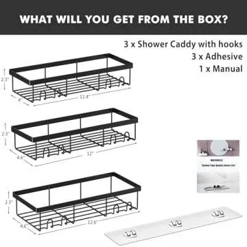 Your purchase includes 3 shower caddies complete with hooks, 3 non-marking adhesives, and a handy installation manual to guide you through the setup process. Plus, enjoy peace of mind with a 3-month warranty allowing you to replace the adhesive if needed. Upgrade your bathroom storage solution today and experience the joy of organization!
