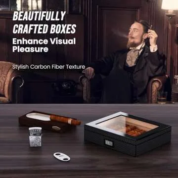 Mojgar Handmade Wooden Cigar Humidor Desktop,20-30 Counts Capacity,Travel Glass Top Cigar Box Portable with Digital Hygrometer,Humidifiers and Divider,Suitable for Home,Office,Bar,Carbon Fiber