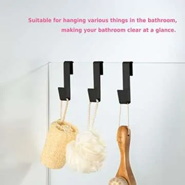 MOKIUER Towel Hook, Over Glass Door Hook for Bathroom, Suit for Frameless Glass Shower Door 0.39" (10 mm) Stainless Steel Matte Black, 3 Pack
