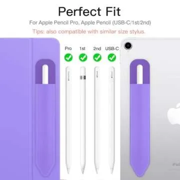 MoKo Pencil Holder Sticker Fit Apple Pencil Pro, Apple Pencil (USB-C), Apple Pencil 1st/2nd Generation, Elastic Pencil Pocket Pouch Adhesive Sleeve Attached to iPad Case for Stylus Pens, Purple