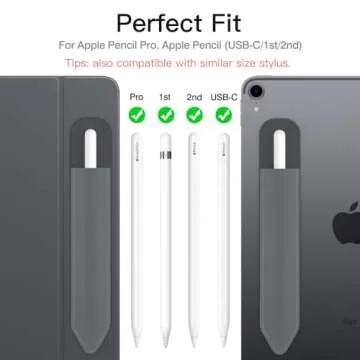MoKo Pencil Holder Sticker Fit Apple Pencil Pro, Apple Pencil (USB-C), Apple Pencil 1st/2nd Generation, Elastic Pencil Pocket Pouch Adhesive Sleeve Attached to iPad Case for Stylus Pens, Dark Gray