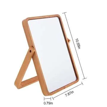 Mokoze Wood Rectangle Vanity Mirror for Desk or Wall - Stand Up Hanging Makeup Mirror, Table Decorative Mirrors for Living Room Bedroom Study Office Home Decor