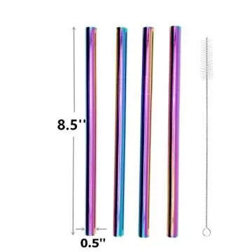 Introducing the **Mokpi Reusable Boba Smoothie Metal Straws**—your ultimate eco-friendly sipping solution! These vibrant **rainbow** stainless steel straws are not only designed for aesthetics but engineered for functionality. Each straw measures a generous **8.5 inches** in length with an **outer diameter of 0.5 inches**, making them perfect for enjoying thick milkshakes, bubble teas, juices, and smoothies. Along with **4 extra wide metal straws**, this package includes a cleaning brush and a convenient...