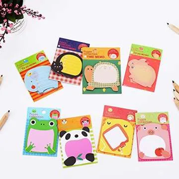 Molain Cute Sticky Notes 16 Pieces Cartoon Sticky Notes Animals Shape Markers Flags Self-Stick Memo Pads Students Home Office Roommates Gifts Tab Supplies