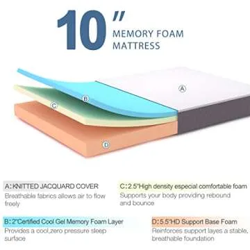 Molblly Queen Mattress 10 Inch Memory Foam Mattress in a Box,Breathable Bed Comfortable Mattress for Cooler Sleep Supportive & Pressure Relief, Queen Size, 60" X 80" X 10"