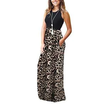 MOLERANI Women's Loose Plain Maxi Dresses Casual Long Dresses with Pockets,Spotted Pattern Leopard,M
