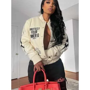 Molilove Varsity Jacket Baseball Bomber Jacket Vintage Sweatshirt College Casual Unisex Streetwear Coats Varsity Jacket Apricot S
