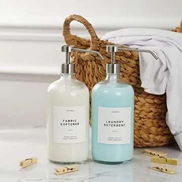 MoliMoli Liquid Laundry Detergent Dispenser for Laundry Room, Fabric Softener Dispenser, Laundry Soap Containers with Pre-Written Labels and Funnel,1000ml/ 33.8 oz Each, Set of 2