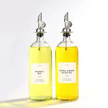 Molimoli Oil and Vinegar Dispenser with Metal Pour Spout, Weighted Pourer, Glass Bottle Dispenser for Kitchen 500ml Silver | Pantry Labels, Organization Labels Set Including Oil Labels for Bottles