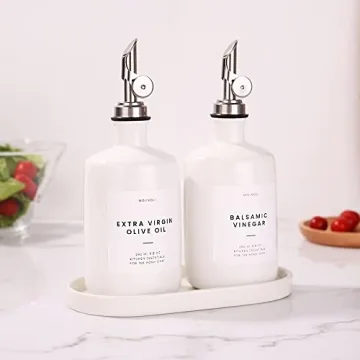 Show moreIntroducing the Molimoli White Ceramic Olive Oil Dispenser Bottle Set, an exceptional modern kitchen essential inspired by minimalism. This comprehensive set includes two stylish 9.8 Oz (290 Ml) ceramic bottles, a fitting ceramic tray, two elegant silver pourers, a funnel for easy filling, and a 37-label set for all your labeling needs. Designed not only to serve but to impress, these dispensers bring a touch of sophistication to your countertop while keeping your cooking oils, vinegars, and dressings at your fingertips.