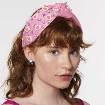 MOLOCH Pink Heart Headband for Women - Valentine's Day Crystal Knotted Velvet Hairband
