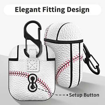 MOLOVA Case for Airpods 1&2 Case,Front LED Visible,PC Plastic Inner + PU Vegan Leather Pattern Skin Cute Funny Cool Skin Fashion Stylish Cover Shock Proof with Keychain for Boys Girls Teens (Baseball)