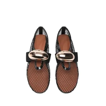Molozoey Mesh Ballet Flats for Women Brass Jewel Fishnet Flats with Strap Round Toe Ballerina Shoes Casual Slip On Mary Jane Flats Comfortable Daily Dress Shoes Black