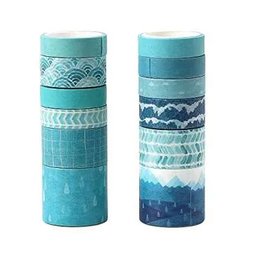 molshine Set of 12 Rolls Washi Masking Tape,Adhesive Crafts Tape for Journaling,DIY,Planners,Decorative,Gift Wrapping,Scrapbooking,School Supplies- (Blue Track Series)