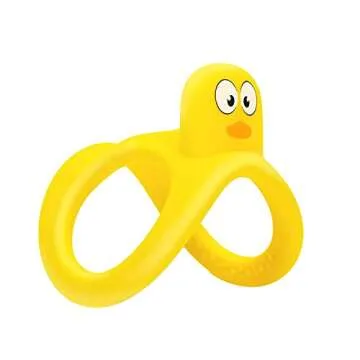 Show more Introducing the Mombella Baby Teething Toys – the perfect companion for your little one transitioning through the teething phase. Made from EU standard LFGB grade silicone, this teething toy is 100% food grade and safe for babies to suck and chew on. It's not only BPA free, but also PVC and Phthalates free, ensuring a worry-free experience for parents. The design features a delightful bright yellow duck that is visually stimulating and crafted with engaging textures that massage your baby's gums, providing much-needed relief during teething.