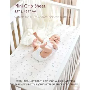 Show more Introducing the Momcozy Muslin Fitted Crib Sheets, where comfort meets functionality! Designed meticulously for discerning parents, these fitted sheets are a blend of premium American natural cotton, ensuring a soothing sleep environment for your little one. With bundled seams and cloth sewn inside the corners, you can say goodbye to the fear of tearing—even after multiple washes. Unlike other fitted sheets on the market, it guarantees long-lasting durability, providing a perfect fit every time.