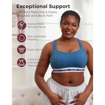 Momcozy Nursing Bras for Breastfeeding, FB011 Low-Impact Nursing Sports Bra Support Maternity Pregnancy Padded Wireless Bralette Blue
