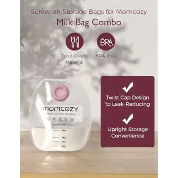 with the Momcozy Screw-on Breastmilk Storage Bags.