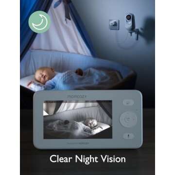 Momcozy Video Baby Monitor, 4.3" HD Baby Monitor with Camera and Audio No Wifi , Split-Screen, Infrared Night Vision Long Battery Life 2-Way Audio Pan-Tilt-Zoom Temperature Sensor Lullabies Ideal Gift
