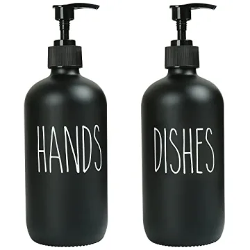 Show more Introducing the MOMEEMO Soap Dispenser Set, a striking 2-pack duo perfect for enhancing your kitchen decor while serving up exceptional functionality. Each dispenser is elegantly labeled with clear "Hands" and "Dishes" markings, alleviating the confusion between dish soap and hand soap. Crafted for the discerning homeowner who values both style and utility, this set brings a sophisticated touch to your farmhouse-inspired kitchen or bathroom.