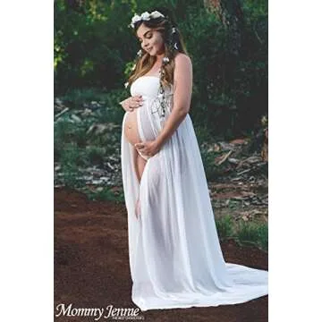 Mommy Jennie Maternity Dress for Photoshoot Sleeveless Open Front Photography Gown,A-White