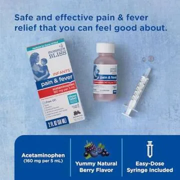 Mommy's Bliss Infants' Pain and Fever Reducer, Baby Acetaminophen, Dye Free, Delicious Mixed Berry Flavor, Ages 2+, 2 Fluid Ounces