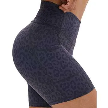 MOMOPUNCH Biker Shorts for Women Printed High Waisted Spandex Yoga Shorts for Workout Running Athletic Tummy Control with Pockets(Greyleopard,M)