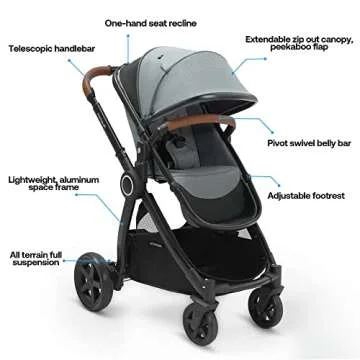 Mompush Ultimate2 Baby Stroller for Toddler with Removable Bassinet & Reversible Seat, Smooth Glide Bassinet Stroller, Full-Size for Comfortable Outings with Baby