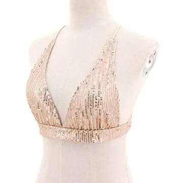 Monanoat Women’s Sexy Sequin Crop Top - V Neck Bandage Tank for Parties
