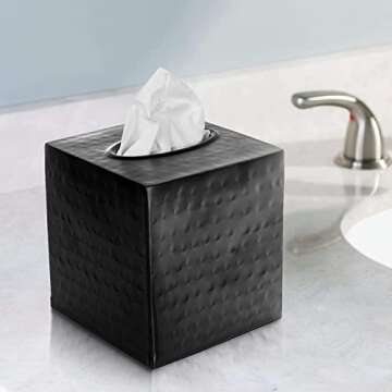 Monarch Abode 19127 Hand Hammered Tissue Box Square Cover Holder & Dispenser - Decorative Tissue Box Holder - Black Tissue Box Cover - Rust-Resistant Tissue Box - Antique Handcrafted Tissue Box