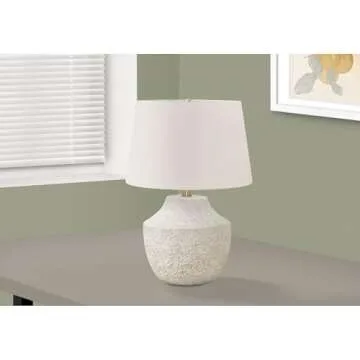 Monarch Specialties I 9729 LightingTable Lamp, Cream Concrete, Ivory/Cream Shade, Modern