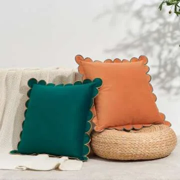 MONDAY MOOSE Decorative Throw Pillow Covers, Set of 2 Soft Velvet Scalloped Round Edge Designs for Home Decor