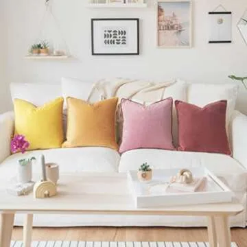 Show moreTransform your living space with the stunning MONDAY MOOSE Decorative Throw Pillow Covers Set! This exquisite collection includes four vibrant velvet pillow covers: a bright yellow, a honey yellow, a pink, and a pink ochre. Measuring 18 x 18 inches each, these covers are designed to infuse any room with warmth and color, creating an inviting atmosphere that invites conversation and relaxation. Crafted with a soft touch, they are perfect for your sofa, bed, or lounge area, showcasing a modern aesthetic that blends beautifully with any decor.