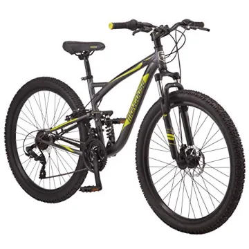 Show more Mongoose Status 2.4 Mountain Bike is engineered for those who crave adventure! Crafted with a lightweight and durable aluminum dual suspension frame, this bike is perfect for both seasoned riders and beginners. With its 27.5-inch wheels, it accommodates riders from 5'4" to 6'2", ensuring a comfortable fit for various heights. Whether you're traversing rugged mountain terrains or cruising through city trails, the front suspension fork provides the utmost control and stability, allowing for a smooth ride on any surface. The bike’s sleek dark silver design is not only visually appealing but also built to endure challenges.