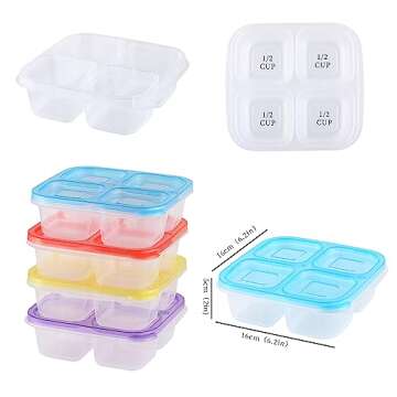 MONGSEW 4PCS Bento Snack Boxes, Snack Containers for Toddlers & Adults, Reusable 4 Compartment food Snack Containers for Work, School, Travel, Picnics, Microwave and Dishwasher Safe, (4 Colors)