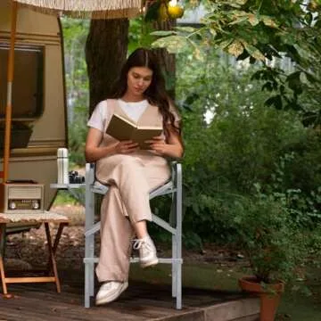 MoNiBloom 31-Inch Foldable Tall Director Chair Folding Portable Aluminum Frame Makeup Artist Chair, with Side Table, Cup Holder and Pockets, 250lbs Capacity (Dark Green)