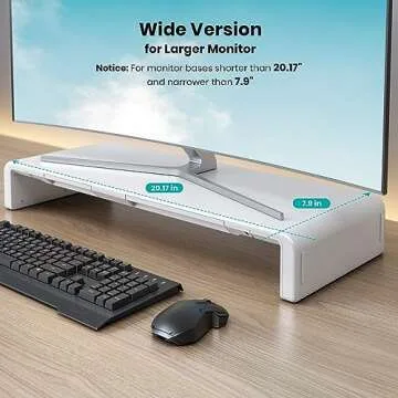Introducing the Klearlook Ergonomic Monitor Riser, your ultimate solution for an organized and comfortable workspace! This innovative monitor stand is meticulously engineered to elevate your computer screen to the perfect height, significantly enhancing your posture while working and reducing neck and back strain. Designed for versatility, it features three adjustable widths—16.5, 18.5, and 20.5 inches—allowing you to customize the setup according to your unique workspace...