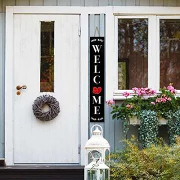 Monjita Welcome Sign for Front Porch Standing, Interchangeable Wooden Sign with 5 Designed Double-Sided Icons for Front Door, All Seasonal Farmhouse Rustic Modern Porch Decor for Fall Harvest