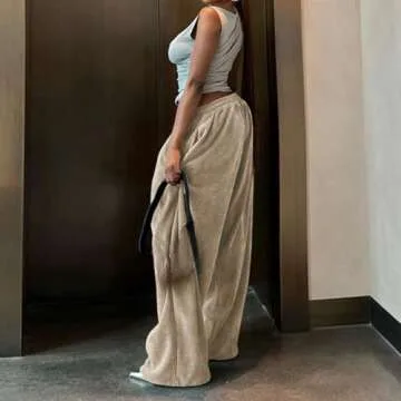 Monkay Women's Corduroy Pants Y2k Vintage Wide Leg Pants Mid Waist Elastic Waist Loose Fit Straight Pockets Trousers (Khaki,Large)